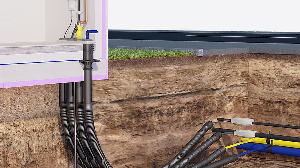 Für Gebäude mit Keller empfehlen wir eine Mehrspartenhauseinführung durch die Wand.