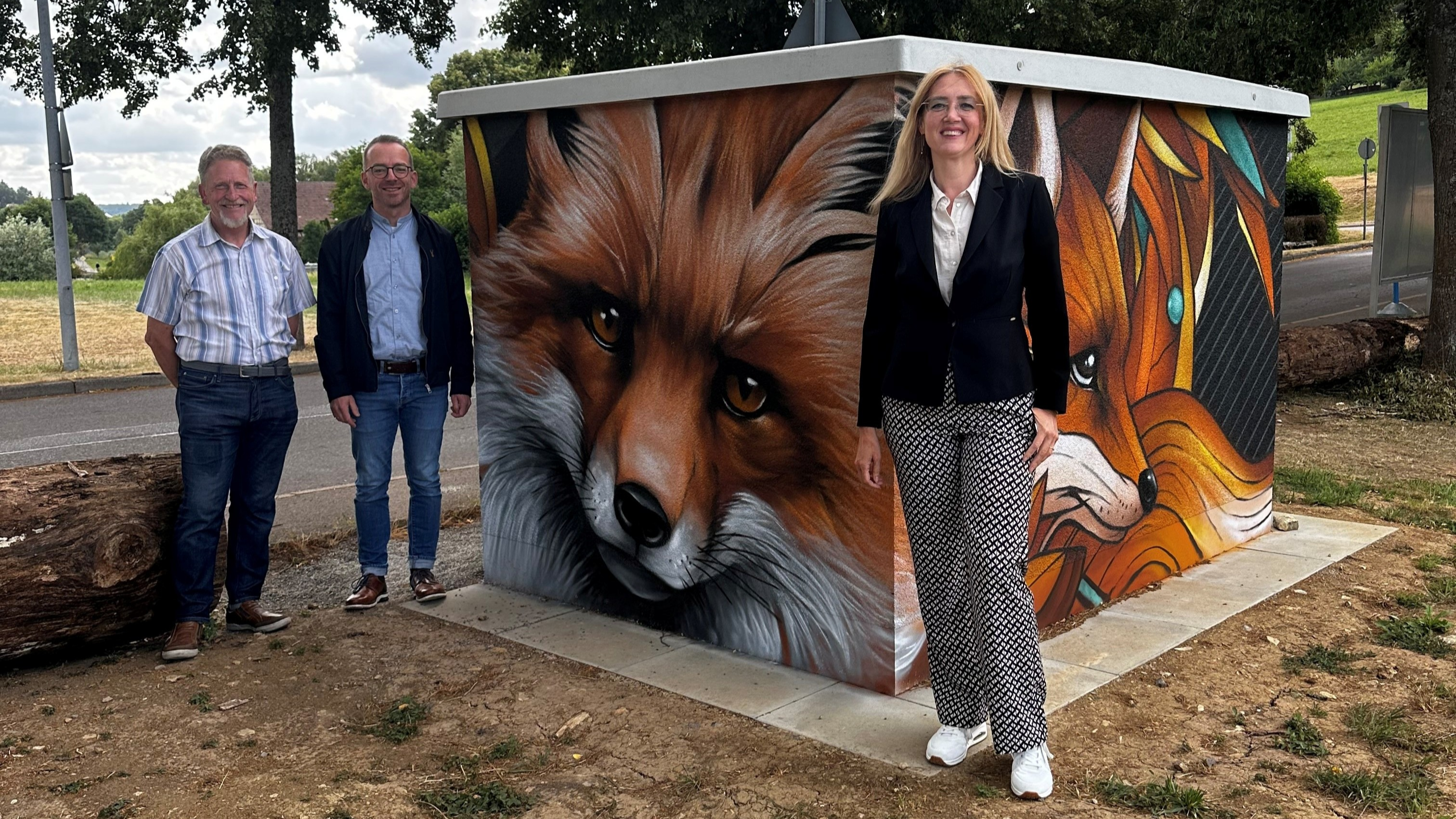 Ortsvorsteher Ulrich Eisenhardt freut sich über den neuen Blickfang und dankt der Netze BW für ihr Engagement: „Die Trafostation ist jetzt nicht nur funktional, sondern auch ein echter Teil unseres Ortsbilds. Das kunstvolle Motiv bringt unsere Heimatverbundenheit zum Ausdruck – schöner hätte man es kaum umsetzen können.“
